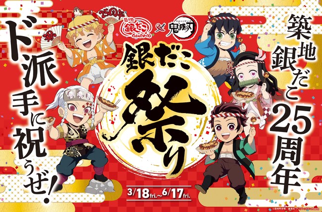 築地銀だこhttps://www.gindaco.com/を展開する株式会社ホットランド(本社:東京都中央区、代表取締役社長:佐瀬守男)は、2022年3月18日から2022年6月17日までの期間、築地銀だこ創業25周年を記念し、全国の築地銀だこ店舗(一部店舗を除く)にて、テレビアニメ 「鬼滅の刃」 との ド派手なコラボレーション を実施いたします。
