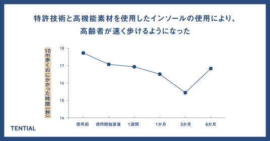 結果2.:特許技術と高機能素材を使用したインソールにより、高齢者の歩行速度が上昇した