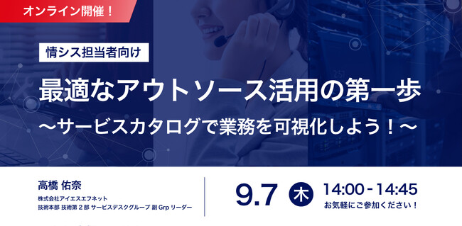 ITインフラソリューションを中心に、クラウド環境や、ネットワークシステムの構築・保守・運用におけるサービスを提供する、株式会社アイエスエフネット(本社:東京都港区、代表取締役:渡邉幸義、社員数:2,460名)は、2023年9月7日(木)の日程にて、【情シス担当者向け】最適なアウトソース活用の第一歩セミナーを開催いたします。