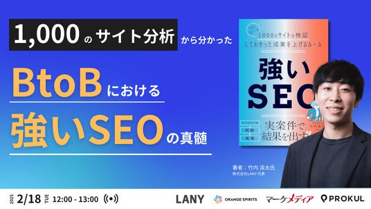 デジタルマーケティング支援を行う株式会社LANY(東京都渋谷区、代表取締役社長:竹内渓太)は、2月18日(火)に行われる「“BtoBにおける強いSEO”の真髄:1000のサイト分析から導き出された成果を上げるルール」に登壇いたします。