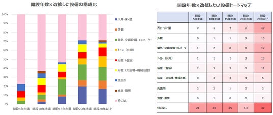 ・開設20年以上になると天井・床・壁や電気・空調設備・エレベーターなどの改修ニーズが高まる