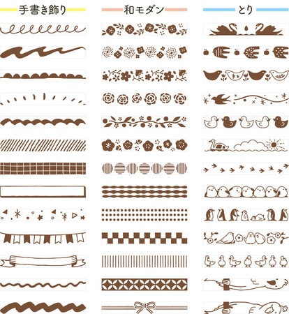 「手書き飾り」「和モダン」「とり」の3種類のデザインが新たに登場。手帳や日記などのアレンジはもちろん、贈り物に添えるメッセージカードのデコレーションなど、さまざまな場面で使用しやすいデザインです。