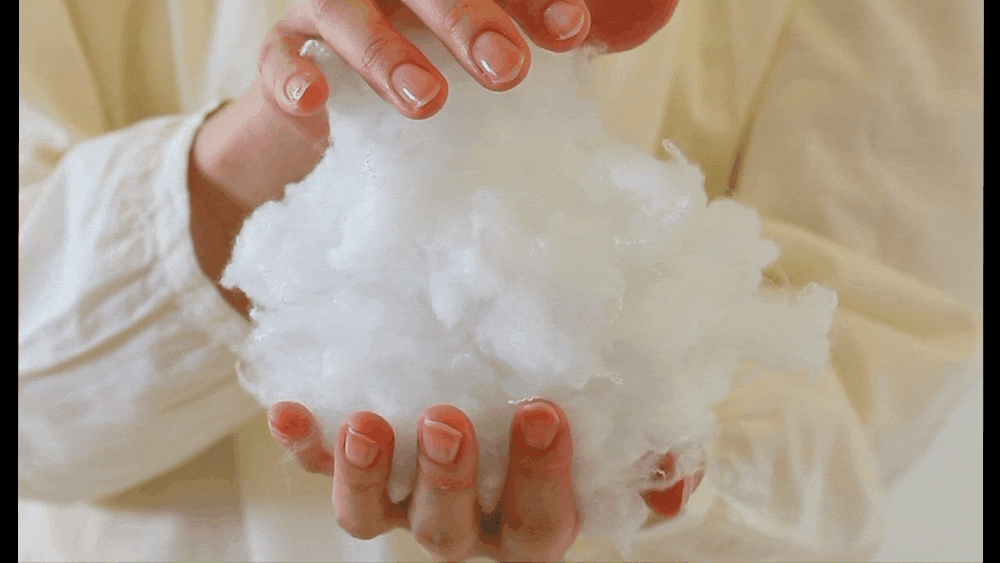 わたの中でもしなやかで柔らかさがあり、なめらかな肌触りのわたを使用しています。