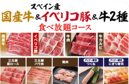 『国産牛&スペイン産イベリコ豚&牛2種 食べ放題コース』