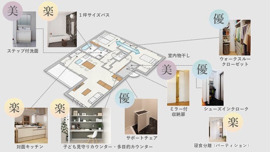 3つのくらしの価値 「美しいくらし」「楽しいくらし」「優しいくらし」を反映させた間取り例(ファミリー)