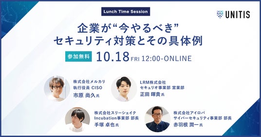 「Lunch Time Session ~企業が“今やるべき”セキュリティ対策とその具体例~」公式サイト:https://unitis.jp/seminars/13456/