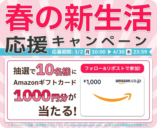 2026年3月2日(月)10:00 ~ 4月30日(木)23:59まで、「春の新生活応援キャンペーン」を実施中です。