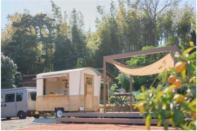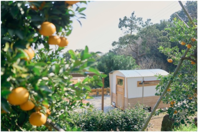 3.滞在:タイニーハウス、アウトテリアデッキを使用した相模湾を見下ろすプライベートみかん農園での滞在