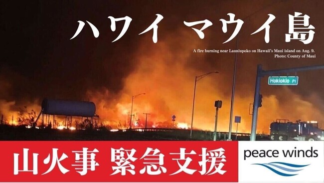 日本の国際NGO「認定NPO法人ピースウィンズ・ジャパン(代表理事兼統括責任者:大西健丞、本部:広島県神石高原町)」は、ハワイ・マウイ島で発生した記録的な山火事による被害を受け、現地に到着した看護師を含むスタッフ3名が支援を開始します。