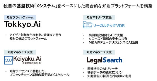 ・ 知財マネタイズ支援ツールの強化:VDR、知財特化の電子契約、法令判例検索AIの最適化