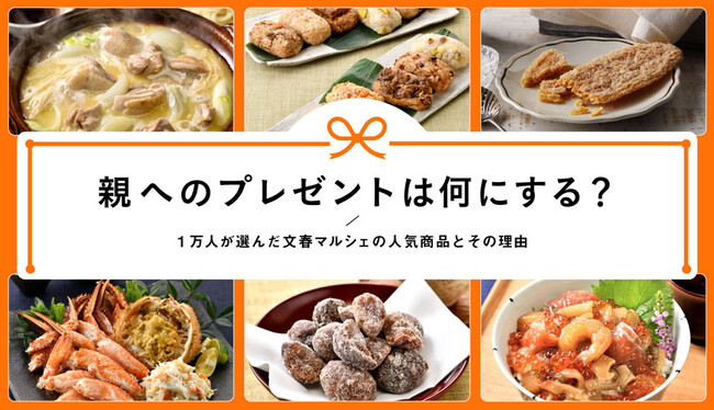 株式会社文藝春秋(東京都千代田区、社長:中部嘉人)が運営する食の通販サイト「文春マルシェ」は、親にプレゼントする頻度や予算、記憶に残るプレゼントの選び方などについて、1万人にアンケート調査を行いました。その際、あらかじめ文春マルシェがピックアップした人気商品8点についても、親に贈るとしたらどの商品が良いか、理由とともに回答していただきました。人気が高かった順にご紹介します。