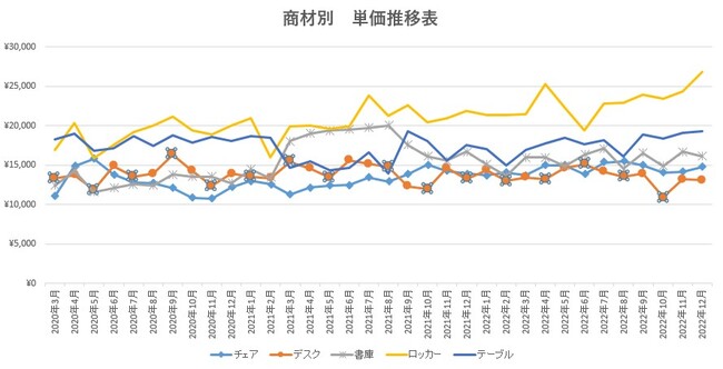 株式会社オフィスバスターズ(東京都中央区 代表取締役社長:熊谷 正慶 以下当社)は、2022年12月度の中古オフィス家具指数を取りまとめました。毎月当社の中古オフィス家具動向を広く皆様へお伝えすることで、当社をご利用いただいた法人及び個人の方々の動向や推移などをご案内しています。