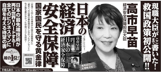 7月8日に発売された『日本の経済安全保障 国家国民を守る黄金律』が「ビジネスマンに勇気を与える書」と評判に!全国の読者から高市氏を支持する多くの声が寄せられている。