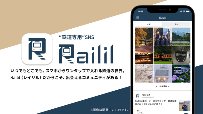 「Railil(レイリル)」は、『鉄道で、人生を豊かに』をコンセプトとして掲げ、ユーザーとなる鉄道ファンの皆様にこだわりの鉄道写真やの思い出を共有していただけるSNS機能と、鉄道に関する耳よりの情報をチェックすることができる機能を併せ持つ、鉄道の新たな魅力に出会えるアプリです。