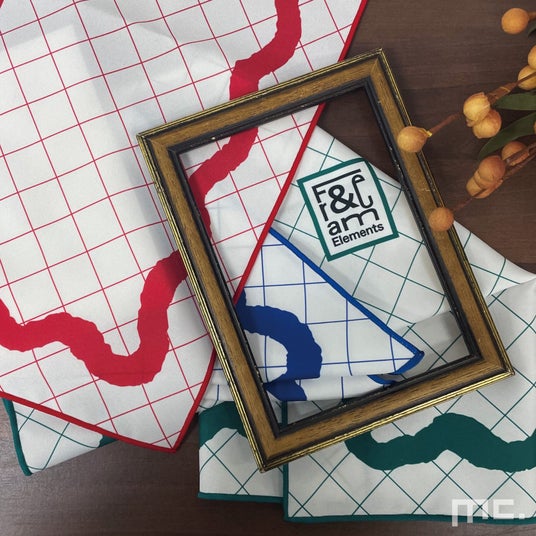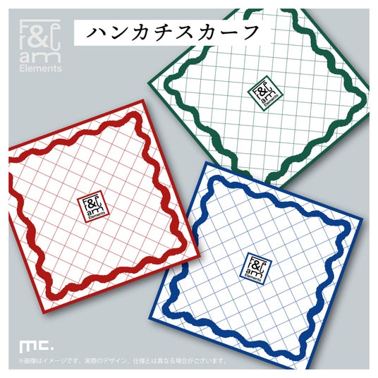 ハンカチスカーフ 1,100円美術館の大理石をイメージした格子模様と、額縁のイメージを合わせたデザインのハンカチスカーフです。赤、青、緑の3色展開となっております。