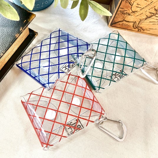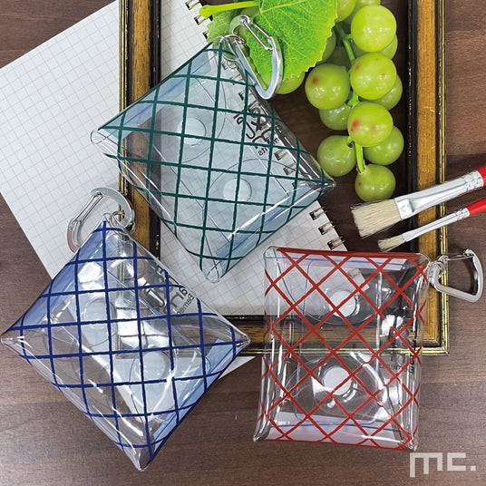クリアマルチケースSS 935円美術館の大理石をイメージした格子模様のクリアマルチケースです。赤、青、緑の3色展開となっております。