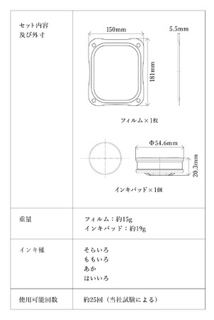 ・インキ色:4種類(そらいろ、ももいろ、あか、はいいろ)