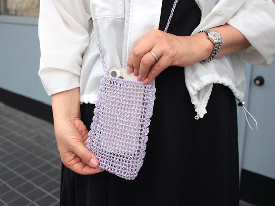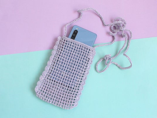 キラキラのヤーンで、自分だけのスマホポシェットを手作りしてみませんか?