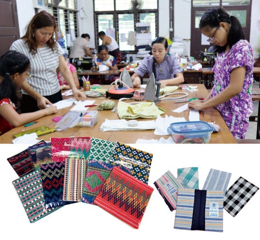 プレゼントキャンペーン(2/15まで)期間中にお申し込みいただいた方に、AARがミャンマーで運営する「障がい者のための職業訓練校」の卒業生が作成した「カード入れ」または「コースター」をプレゼント。ミャンマーの民族衣装に使われる布で作ったオリジナル商品です。