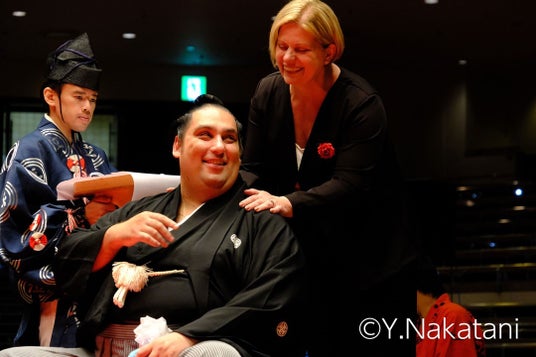 友綱一郎親方(ブラジル出身 日系三世)(中)、