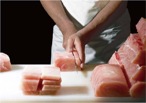 羽床総本店には,この豊富な海の幸に恵まれた土地で培った「魚の良さを見分ける目利きの力」があります。熟練の職人が生でも食せるほどの新鮮な「かじき」を手仕事で切り分け,その過程でさらに吟味される羽床総本店ならではの味を,ぜひ大切な方へ。