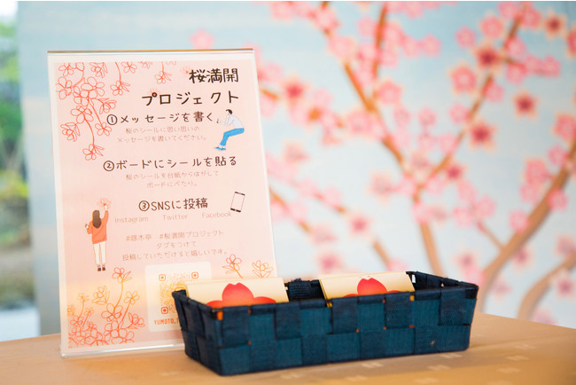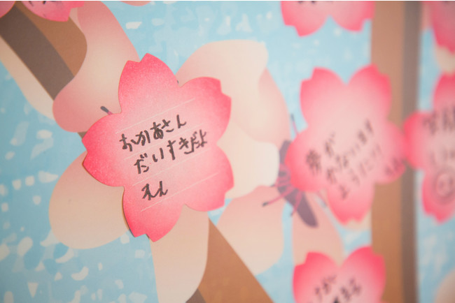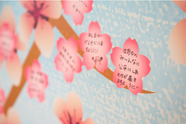 皆さんの思い、願いごとを自由に書いていただいて桜の花びらを咲かせて満開にしていただくイベント。