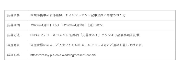 花嫁アプリ「PLACOLE & DRESSY」を運営する、冒険社プラコレ(本社:神奈川県鎌倉市、代表取締役CEO:武藤功樹)は映画『名探偵コナン ハロウィンの花嫁』とタイアップを実施、「オリジナルご祝儀袋」をプレゼントすることが決定致しました。