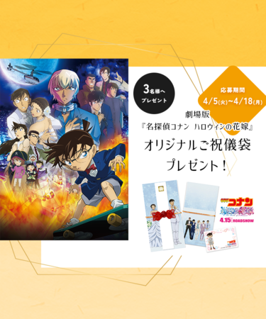 2022年4月15日(金)に上映予定の映画『名探偵コナン ハロウィンの花嫁』とPLACOLE & DRESSYがタイアップが決定。今回、映画のタイトルが「ハロウィンの花嫁」ということもあり、結婚式を控えるDRESSY読者に映画『名探偵コナン ハロウィンの花嫁』の「オリジナルご祝儀袋」をプレゼントすることが決定しました。