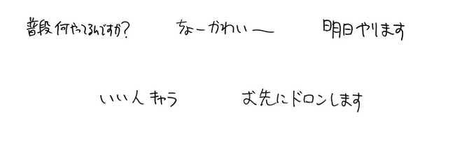 2023年11月1日(水)~2024年4月30日(火)の期間限定で設置される「KagamiKenスタンプ」は、加賀美健さんがBUZZUのために描き下ろしたフレーズ10点となっています。思わずクスっと笑ってしまったり、どこか共感してしまうようなストレートなフレーズのスタンプを使って自分だけのアイテムを制作できるのはBUZZUだけ。10点のスタンプのうち5点は11月1日(水)より、残りの5点は11月中旬より使用いただけます。
