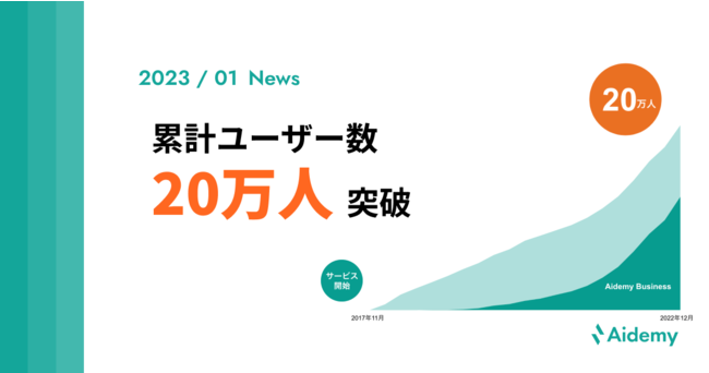 デジタル変革に伴走する株式会社アイデミー(本社:東京都千代田区、代表取締役執行役員 社長CEO 石川聡彦、以下「アイデミー」)が運営するAI/DX(※1)・GX(※2)オンライン学習サービス「Aidemy」は、2017年12月のサービスローンチから5年で累計ユーザー数20万人を突破いたしました。昨今のDX人材育成とリスキリング(※3)需要の高まりを受け、特に法人向け「Aidemy Business」のユーザー数の伸びが大きくなっております。これを記念し、デジタルコンテンツなどで習得したDXの基本知識を実践で使えるDX人材へ後押しする研修プログラム「Aidemy Practice」、および、Python特化型オンラインプログラミングスクール「Aidemy Premium」にて、キャンペーンを実施いたします。
