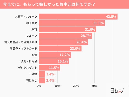 注目すべきは、「地元名産品・ご当地グルメ」(26.4%)が上位に食い込んでいる点です。定番の商品ではなく“その土地ならでは”のレア感のある品に魅力を感じる方が多いことを示しており、贈り手の個性やセンスが読み取れる点も好印象につながっていると考えられます。