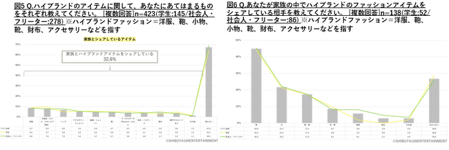 また、家族とハイブランドアイテムをシェアしている※図5のは全体の32.6%で、シェア相手※図6として最も多かったのは「母(44.9%)」でした。