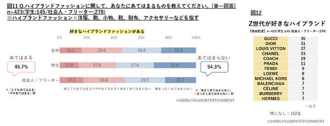 株式会社SHIBUYA109エンタテイメント(本社:東京都渋谷区、代表取締役社長:石川 あゆみ)が運営する若者マーケティング機関『SHIBUYA109 lab.(読み:シブヤイチマルキュウラボ)』は、学生と社会人を含む20代のZ世代(20~26歳)を対象に、外部調査パネルによるWEB調査とSHIBUYA109 lab.独自ネットワークによるインタビューから「Z世代のハイブランドに関する意識調査」を行いました。