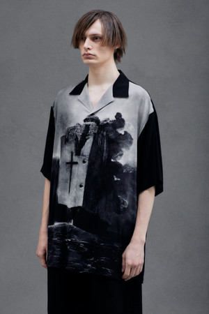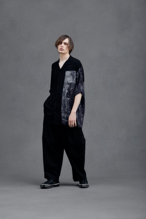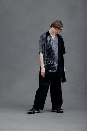 また、Yohji Yamamoto POUR HOMME 2022-23年秋冬パリコレクションにて、退廃的な世界観と荘厳な描写で知られるポーランドの芸術家、「Zdzisław Beksiński(ズジスワフ・ベクシンスキー)」とのコラボレーションを発表したのは記憶に新しいが、今回、死や絶望、廃墟、終焉などをモチーフとした彼の作品5点をプリントしたアロハシャツ5型を展開いたします。ベクシンスキーの「虚無的」な作風と、アロハシャツに象徴される「楽天的」な雰囲気という、2つの異なる要素を組み合わせる事により生まれる独創的なスタイルは、ヨウジヤマモト普遍のデザイン哲学を表しています。