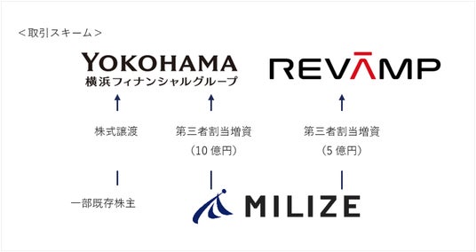 株式会社MILIZE(本社:東京都港区、代表取締役社長:田中 徹、以下「MILIZE」)は、株式会社横浜銀行(本社:神奈川県横浜市、代表取締役頭取:片岡 達也、以下「横浜銀行」)を傘下に有する株式会社横浜フィナンシャルグループ(本社:東京都中央区、代表取締役社長:片岡 達也、以下「横浜FG」)との間で、AI、AIエージェントを活用した金融サービスの高度化を目的とする資本業務提携をおこない、横浜FGの持分法適用関連会社となりましたことをお知らせいたします。また同時に、株式会社リヴァンプ(本社:東京都港区、代表取締役社長:湯浅 智之、以下「リヴァンプ」)を引受先とした第三者割当増資を実施し、同社よりハンズオン型の業務改革支援を受けることについて合意いたしました。