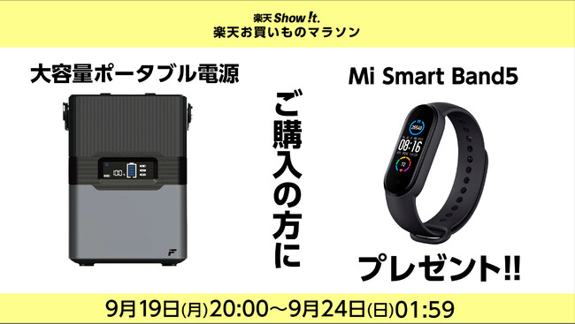楽天市場「Show !t」は9月19日(月)20時から、アウトドアで大活躍する、MEISTER.F大容量ポータブル電源をご購入いただいたお客様に、4,000円相当シャオミのスマートバンド5をプレゼント。スポーツの秋に大活躍する11種類のスポーツモード搭載で健康管理機能が充実した使いやすいスマートバンドです。また、9月19日(月)20時~9月24日(土)01時59分まで開催される、全商品ポイント10倍プレゼント(一部商品を除く)の楽天お買い物マラソンに参加します。