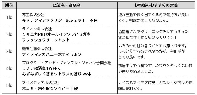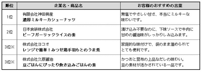 ※ 同票獲得により、複数商品が同じ順位となったもの