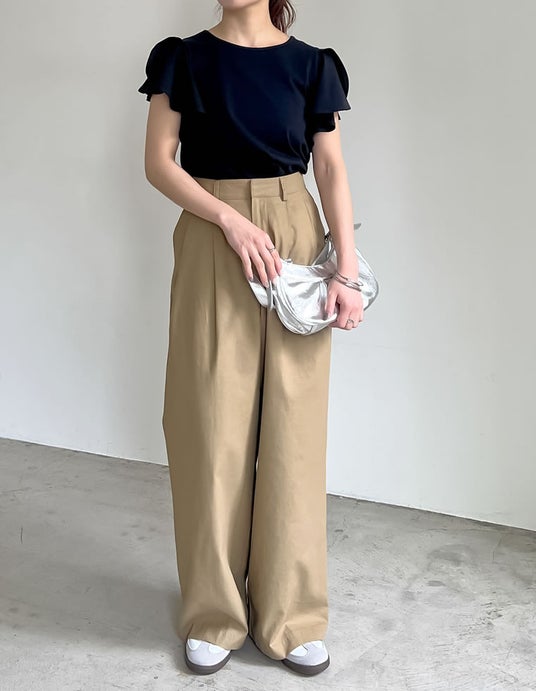 シンプルなデザインなので、どんなボトムとも合わせやすいのが魅力。