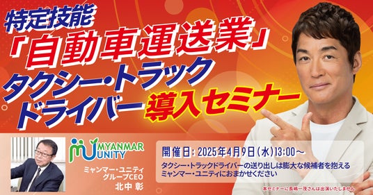 本セミナー開催は2025年4月9日(水)13:00より、ミャンマー政府認定圧倒的No.1(※)人材送り出し機関「ミャンマー・ユニティ」主催によりオンラインで無料にて開催いたします。