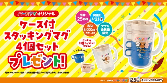 税込5,000円以上お買い上げ、かつバースデイアプリ会員のお客様に、各店先着25名様限定で、バースデイオリジナルデザインのスタッキングマグをプレゼントします。