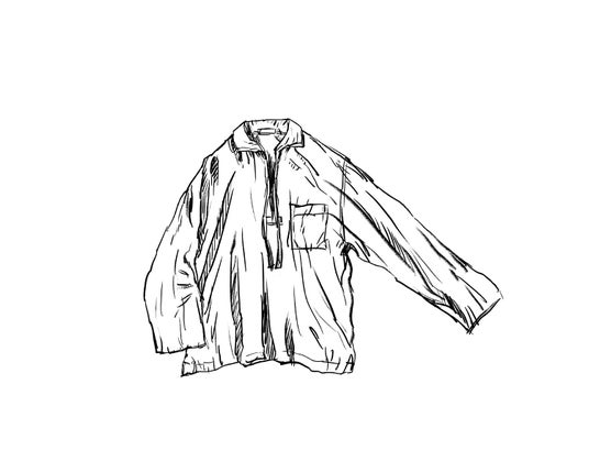 イタリア軍やフランス軍などの水兵たちのセーラーウェアの雰囲気を吸い上げつつも、男の普段着として、シンプルな顔に仕上げました。象徴的な衿はコンパクトな開襟調にし、装飾テープの代わりにジグザグステッチをあしらっています。