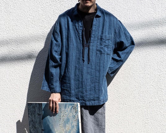 Linen Indigo Stripe Sailor Smock Shirt ¥27,500taxin