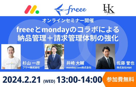 2023年2月21日(水)13時00分~14時00分でZOOMにて「freeeとmondayのコラボによる、納品管理+請求管理体制の強化」について語るウェビナーを開催いたします。