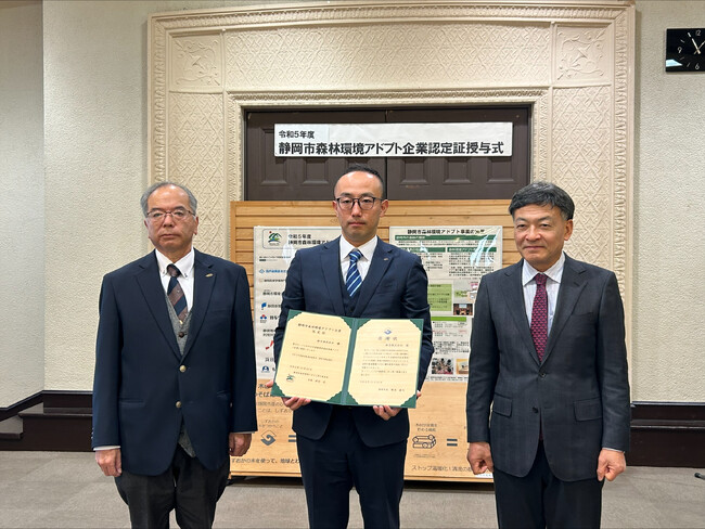鈴与グループは、12月25日(月)、静岡市役所にて難波静岡市長より「令和5年度 静岡市森林環境アドプト企業認定証」および「感謝状」を受領しました。