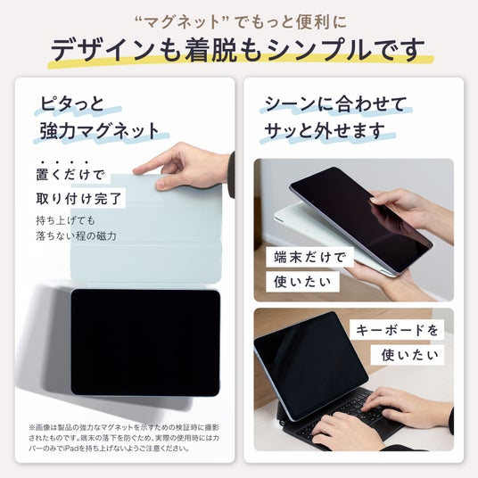 ベルモンド「マグネスマート」はマグネット吸着式のiPad対応ケース(カバー)です。強力な磁気で吸着し、取り外しも簡単です。【ペンシル無線充電対応】