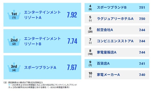 【日本の調査分析対象のCEEスコアトップ10ブランド】(2024年)