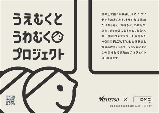 名古屋鉄道は、株式会社電通名鉄コミュニケーションズ(本社:名古屋市中村区名駅四丁目8番18号、代表取締役社長:新井 秀夫)と連携し、電車内の中吊り広告を活用して、今までになかったようなアイデアを加えた“アイデアのある”中吊り広告で電車をご利用の方や世の中が上向くきっかけになる「うえむくとうわむくプロジェクト」を10月28日からスタートします。