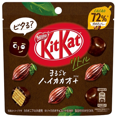 さらなる市場活性化を目指し、この度、オリジナルのミルク、ストロベリーに加え、控えめな甘さと軽い食感が特徴の「オトナの甘さ」、ザクザク食感の「全粒粉ビスケットin」、カカオニブ(※1)がカカオの風味と独特の食感をもたらす「まるごとハイカカオ+(プラス)」の3品を新たに定番品に加え、「キットカット リトル」シリーズとして一新いたします。