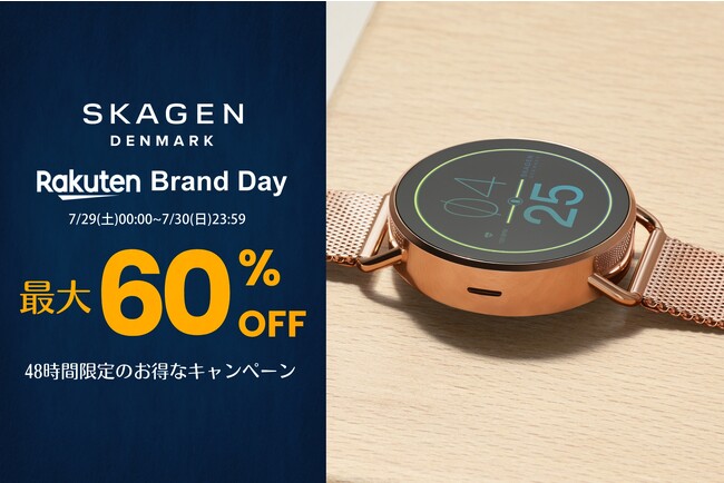 デンマーク発のライフスタイルブランド「SKAGEN(スカーゲン)」が、楽天市場で開催の「Rakuten Brand Day(楽天ブランドデー)」にて、7月29日(土)、7月30日(日)の2日間限定のお得なキャンペーンを開催。