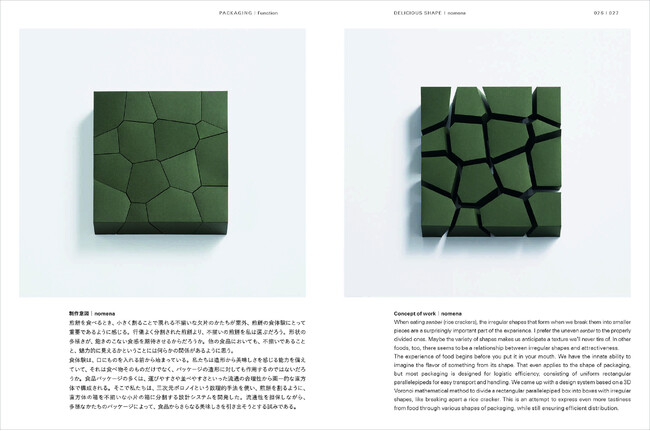 「機能」編では、古典的な素材でありながら、技術の進展によって大きく変化している紙の近未来に目を向け、クリエイターがその真価を理解し、実用レベルに考え抜かれた容器と包装を提案します。柴田あゆみ・伊藤亜紗・原研哉の3氏による鼎談「資源と人間の往来」も収録。